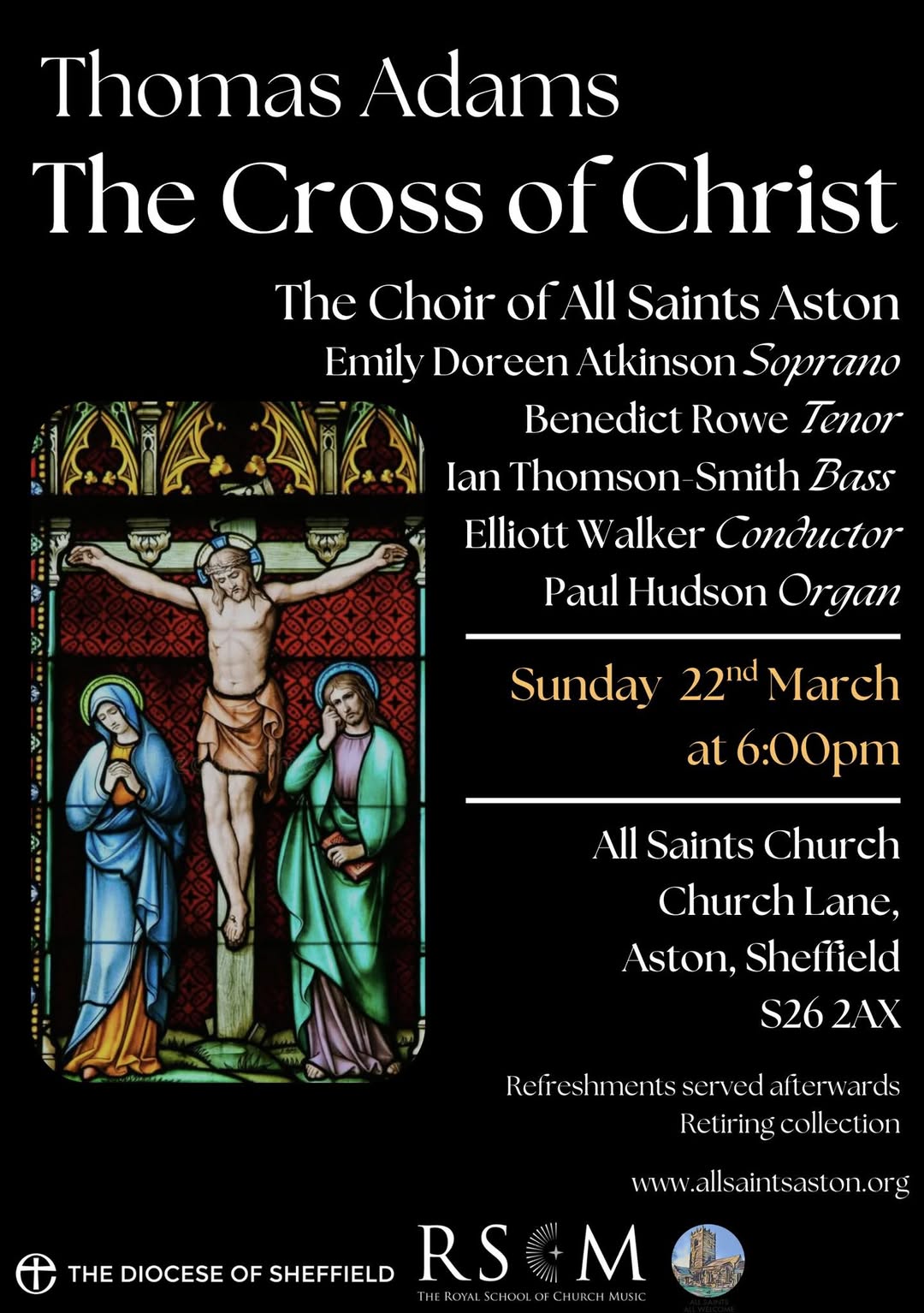 Thomas Adams (note that there are two composers of this name!) was a Victorian/early Edwardian composer and organist based in London. He was Organist and Director of Music at St Alban’s, Holborn, from June 1888 until November 1918 where he died in post. The church itself was heavily shaped by the Oxford Movement, a tradition which it still up holds to present day. The cantata is a devotional work focused on the meaning of the Cross. Rather than retelling the story of Christ’s crucifixion – as in The Crucifixion by John Stainer – it instead offers a reflection on sacrifice, love, and discipleship. The text draws on scripture, including Psalm 91, Corinthians, Matthew, Genesis, and others.